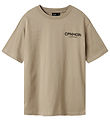 Stylish LMTD t-shirt in white with narrow, horizontal stripes in dark blue. The T-shirt has a nice rib structure and a round neckline.