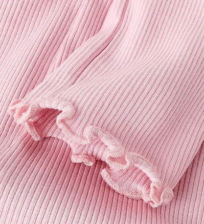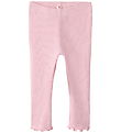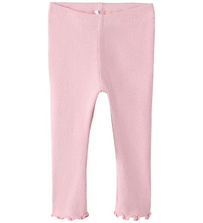 Beautiful Name It leggings in a light pink colour with a lovely ribbed structure. The Name It leggings have an elastic waist and delicate, wavy edges at the ankles.