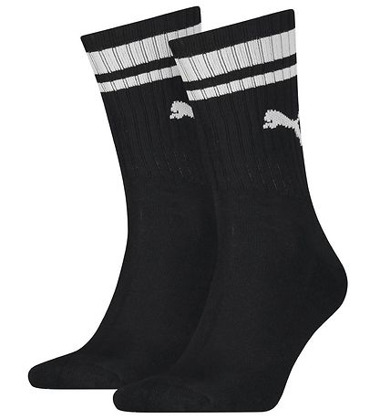 Beautiful Puma socks sold in a 2-pack in black with a Puma logo in white on the ankle and two white stripes on the shaft.