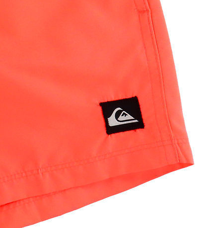 The Quiksilver swim shorts have a loose fit and a wide elastic waistband that can be tightened with a lace at the front. There are practical pockets on the sides and a pocket on the back that closes with velcro. On the inside there is a white mesh lining.