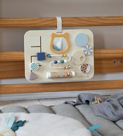 The Sebra activity toys toy is the perfect addition to the game, as the different activities help teach the little ones about different things, e.g. the little ones can practice counting with the ball frame and much more. The Activity toys toy can be hung up with a practical Velcro strap at the top.
