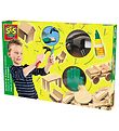 The SES Creative ball stilts have a long cord that goes through the side of the semi-circles and acts as a kind of stilt. The kid can decide for himself whether they want to walk on the flat or the round side towards the ground. Through playing with the ball stilts, the kid's self-confidence, balance ability and physical development are improved.