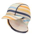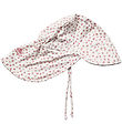 The Småfolk swim hats is shaped like a legionnaire hat with a round head shape and a sewn-in elastic at the neck, which ensures a comfortable fit. In front there is a firm but flexible brim, and at the back there is a long neck shade. The Sun hat is tied under the chin with practical drawstring.