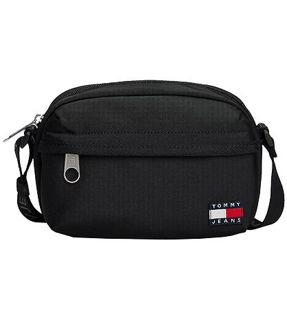 The Tommy Hilfiger shoulder bag has a square shape and consists of two Rum, both of which open with a zipper. Inside the back Rum there is a smaller, open pocket, which can be used for various small items. The shoulder bag has an adjustable shoulder strap in black with grey logos.