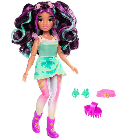 The Unicorn Academy doll has movable led and has dark hair with light green and pink stripes and clothes in light green and pink. Isabel loves unicorns and she is kind and sweet. She takes care of everything and everyone because she is empathetic and compassionate. She always tries to see the good in others - even if it's the mean girl Valentina.