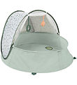 The 3 Sprouts play tent has a round shape with a pointed roof. At the front there is an opening with a piece of fabric that can be rolled up or left down, and the play tent also has two mesh windows on the sides. The play tent invites you to lots of play either alone or with your friends, soft toys and dolls.