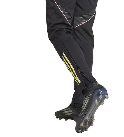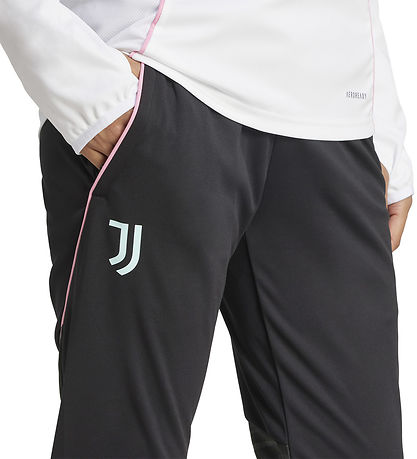 Great track pants from adidas Performance in a classic black with Juventus and adidas logo prints on the thighs. The Trousers are decorated with yellow stripes on the bottom of the legs and a nice pink contrast stripe.
