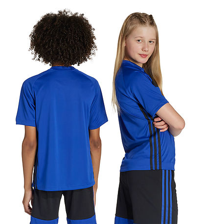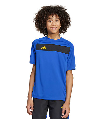 Elegant adidas Performance t-shirt in a ready dark blue shade. The T-shirt has a black panel at the top with a gold adidas logo, which creates a nice contrast. Along the sides there are the classic adidas Performance stripes, which highlight the timeless design.