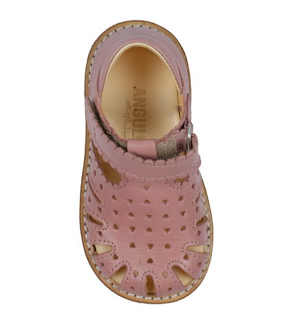 Cute Angulus prewalker sandals in pink leather with fine pointelle at the toes.