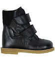 Stylish Angulus winter boots in black nubuck and textile with brown details.