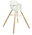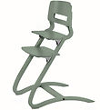 On the inside of the legs there are grooves in which the seat and footplate are fixed, and they can be adjusted to many different heights, so that the high chair grows with the kid. When the kid is approx. 3 years or large enough to sit on their own, the safety bar can be removed so that the chair is also suitable for older kids.