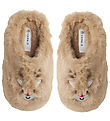 Beautiful Bonton slippers in brown faux fur with a sweet, embroidered rabbit face at the toes.