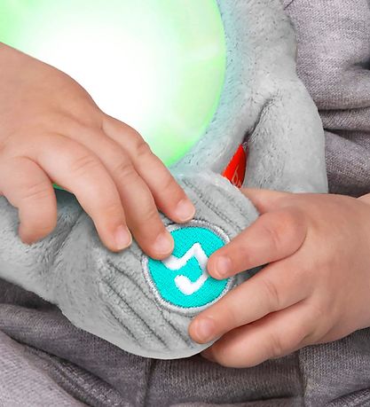The Bright Starts soft toy can play various melodies and music by pressing on its right foot. The belly of the elephant lights up while the music plays and its ears crackle.