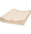 Fine Cam Cam Copenhagen changing pad in white with a beautiful allover print of berry plants in red and blue.