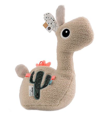 Fun Done By Deer activity toy toy shaped like the llama "Lalee" in light brown tea lining. On one side there is a nice cactus in green.