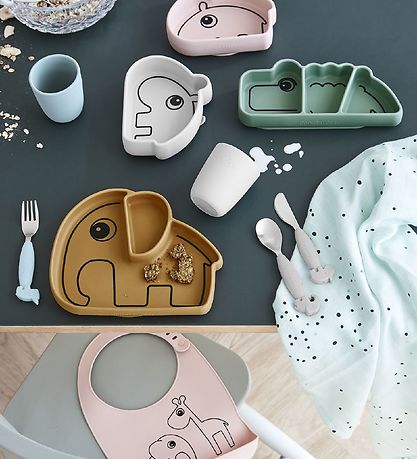 Sweet Done By Deer bowl in light powder colour, shaped like the hippopotamus "Ozzo". At the bottom of the bowl, there is also a black print of the cute hippopotamus.