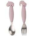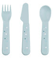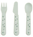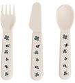 Beautiful Done by Deer cutlery consisting of a fork, a knife and a spoon in dusty green, with motifs of animal friends.