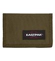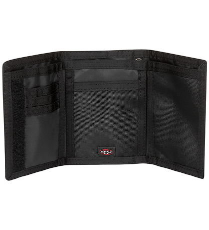 The Eastpak wallet has a square shape and is opened with velcro. On the outside there is a little zippered compartment for, for example, coins. On top there is a little hole where you can, for example, attach a keychain.