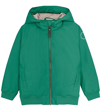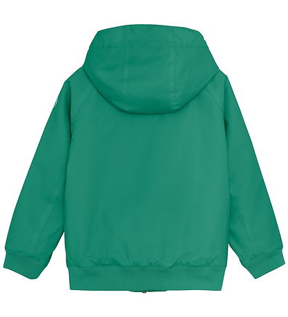 Smart En Fant lightweight jacket in a fresh green colour. The Lightweight jacket has a nice cut like a bomber jacket. It has a Fast hood with an elastic edge and a practical brim, which protects from wind and weather. The sleeves and bottom of the jacket have wide ribbed edges, and it closes with a zipper with chin guard and inner wind pole. There are discreet pockets on the side, and the lightweight jacket has a cream-colored, smooth woven.