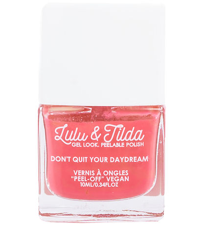 Beautiful Great Pretenders nail polish in the color Don n't Quit Your Daydream, which is a dark, pink shade and has a gel look. The Nail polish comes in a 10 mL glass container and has a plastic lid with an integrated application brush.