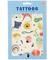 The Great Pretenders tattoos are applied directly to the skin and must then be moistened with a little water for approx. 30 seconds. The tattoos are skin-friendly and can be easily removed again. There is a sheet of tattoos and they are smart as costume accessories and decoration and applied in imaginative formations.