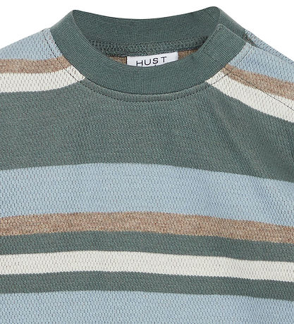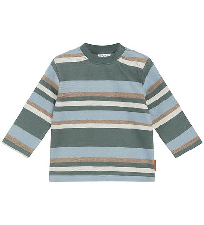 Beautiful Hust and Claire blouse with woven structure and in a melange and wide striped design in shades of blue, green, brown and beige.