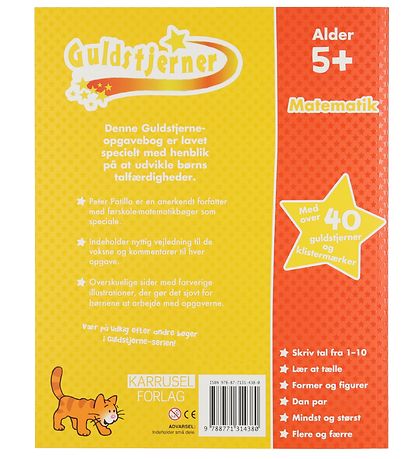 The Karrusel Forlag activity book is filled with fun and educational ways to introduce kids to math. There are more than 40 gold stars and stickers that help make learning math more fun. The activity book consists of 32 pages.