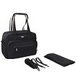 The Changing bag is carried in an adjustable shoulder strap. There are also velcro straps on the strap, so it can be attached to a kid or stroller.