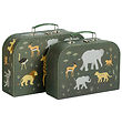 Nice A Little Lovely Company cardboard suitcase consisting of two suitcases in light blue with a colorful print with different vehicles.