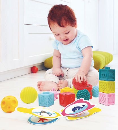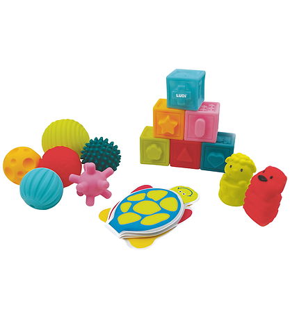 Colorful Ludi activity toy with 15 shapes with different textures. The Ludi toy stimulates the senses and is ideal for exploration with its exciting colours and shapes.