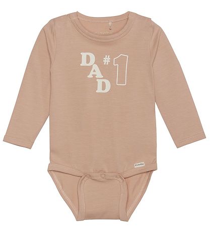 Sweet Minymo bodysuit in a beautiful dusty pink and with white text both front and back.
