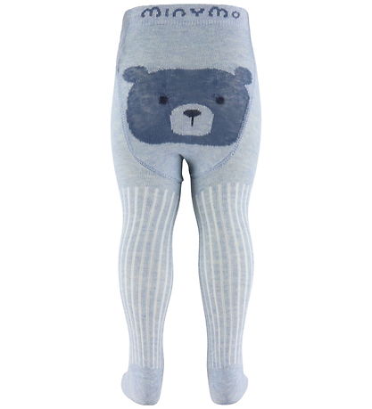Inviting Minymo tights in a beautiful light blue shade. The Thights have a charming bear head on the back in blue shades, which gives a playful touch. They have an elastic waist that ensures a good fit and support.