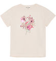 Colourful Minymo T-Shirt with short sleeves in navy blue with a large print of an excavator and a tractor on the front. The T-shirt brings liv to the wardrobe with its engaging motif from Minymo.