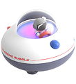 Fun Mobility On Board speaker with microphone in mint blue and with yellow and orange details.
