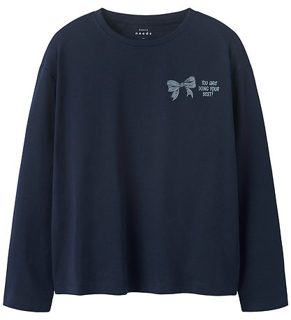 Elegant Name It blouse with long sleeves in a deep, navy blue shade.
