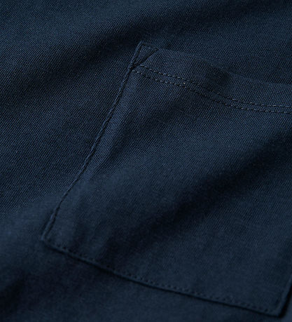 Smart Name It blouse with long sleeves in a navy shade. The Blouse has a single chest pocket and a round neckline, which gives a minimalist look. The even structure and clean lines in the design ensure that the Name It blouse appears stylish and simple.