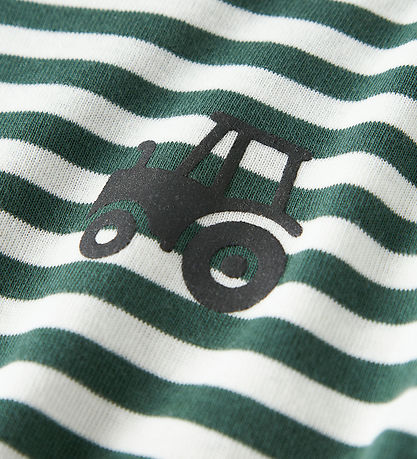 Practical Name It blouse with long sleeves in classic stripes. The Blouse has a green colour with white stripes and a round neckline. It is decorated with a discreet tractor print on the chest, which adds a fun element to the design.