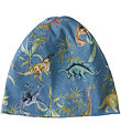 The Name It beanie has two pom-pom on top, earflaps and a drawstring. The Mittens are without thumbs.