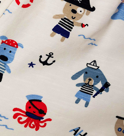 Fine Name It shorts in off white with an all-over-print of e.g. pirate ships and dogs in blue, red, beige and black.