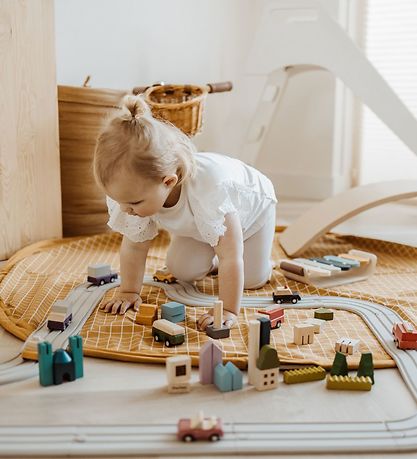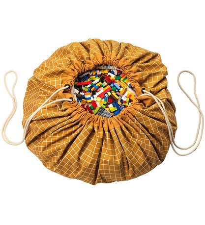 The Play&Go toy rug is a large circular piece of fabric with a running course all the way around with a white string, so that you can lace the blanket together into a bag. You can store your toys in the bag, and when the kids think the toys should be brought into the living room, the bag can be opens and the play mat unfolds. Afterwards, it is quick and easy to clean up and put in place. It is good to take with you to the beach, as it is waterproof.