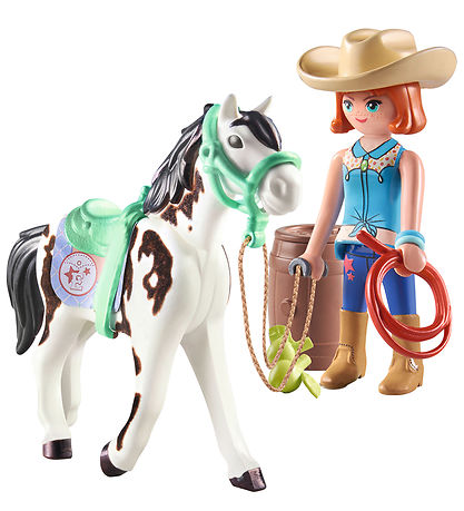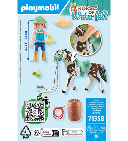 Fine Playmobil Horses Of Waterfall set with a total of 16 parts that can be assembled for the figure Ellie and the horse Sawdust. Accessories are also included.
