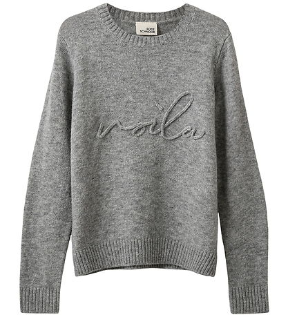 Elegant Sofie Schnoor blouse in melange grey knitted. On the front there is a discreet embroidered "voilĂ " in matching grey yarn, which gives a sophisticated look.