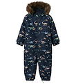 Beautiful Sofie Schnoor PU snowsuit in navy blue with a reflective logo print on the back of one leg.