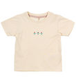 Stylish t-shirt from The New Siblings in a melange beige. The T-shirt has a discreet logo embroidered in navy on the chest, which gives a modern touch to the simple design.