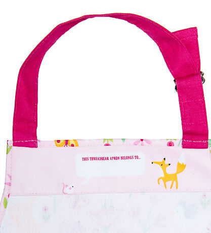 Nice ThreadBear apron in pink with a colorful garden print of cute DYR and pretty flowers.
