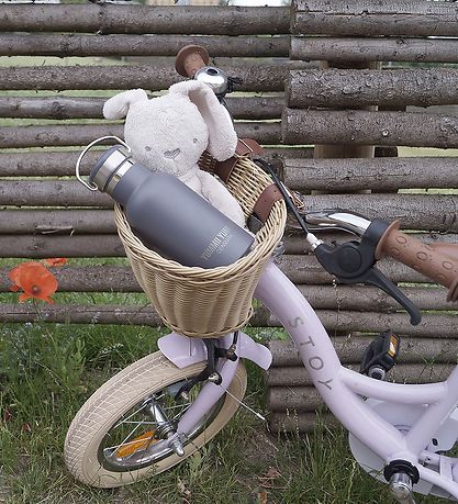 Yummii Yummii thermo bottle is delivered in a GOTS-certified pouch drawstring bag. It has a large, round lid and the bottle can hold 350 mL.