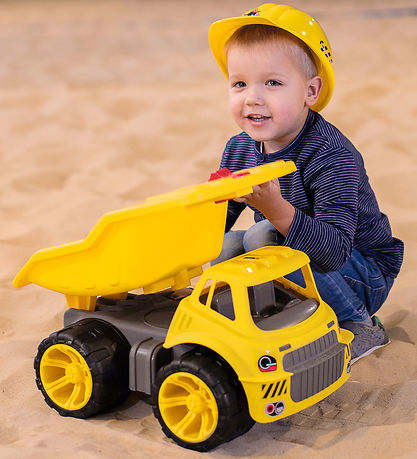 The BIG toy is large and robust and a copy of the real vehicles, so it is ideal for small construction sites. The truck can transport many different materials such as sand or building blocks. The large cargo area can hold up to 4.2 L and can be loaded with materials weighing up to 25 kg. The cargo compartment has a smart locking mechanism that prevents it from activity toy backwards while in motion.