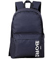 Cool Björn Borg backpack in black with a discreet logo print on the front. The Backpack consists of a large Rum that opens at the top with a zipper with two sliders. Inside there is a quilted pocket towards the back for e.g. a computer. On the front of the backpack there is a smaller Rum that opens with a zipper. The Backpack has a quilted back and bottom as well as padded and adjustable shoulder straps. The shoulder straps can be joined in the middle with a buckle. At the top there is a practical handle.