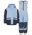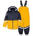 Smart Didriksons rainwear, consisting of a rain jacket and a pair of rain pants with suspenders in shades of green. The Rainwear is made of PU.