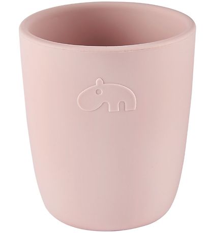 Convenient Done By Deer cup in a light powder colour, with a small hippopotamus on one side.